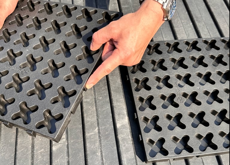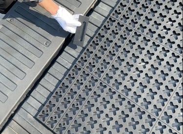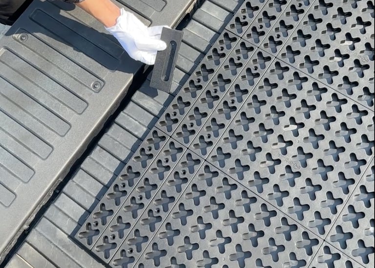 Press down firmly to secure Gripteck in place use the strips and slide ramps provided to complete the setup.